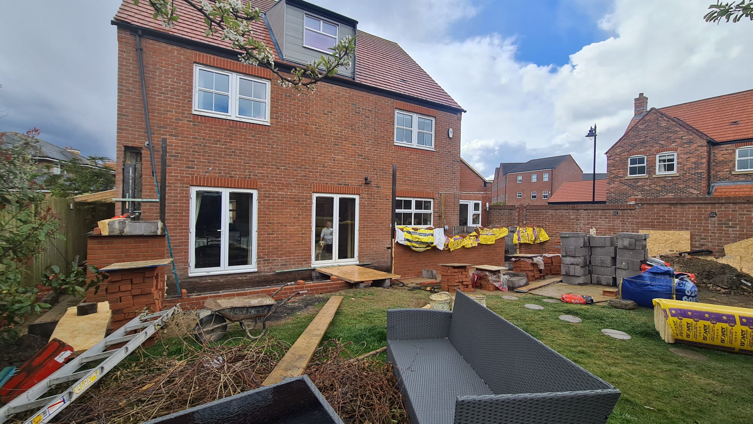 Scaffolding up. Some of the steel has arrived. Brickie back to finish off tomorrow.