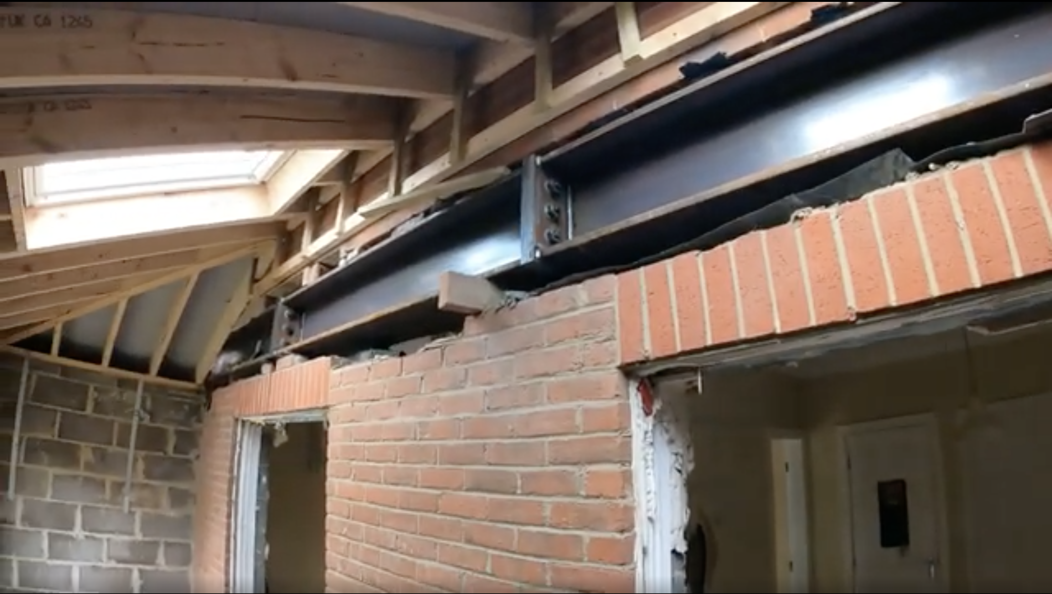 Roof joists on. Steel beam welded in place above the doors. Tiler coming on Friday.