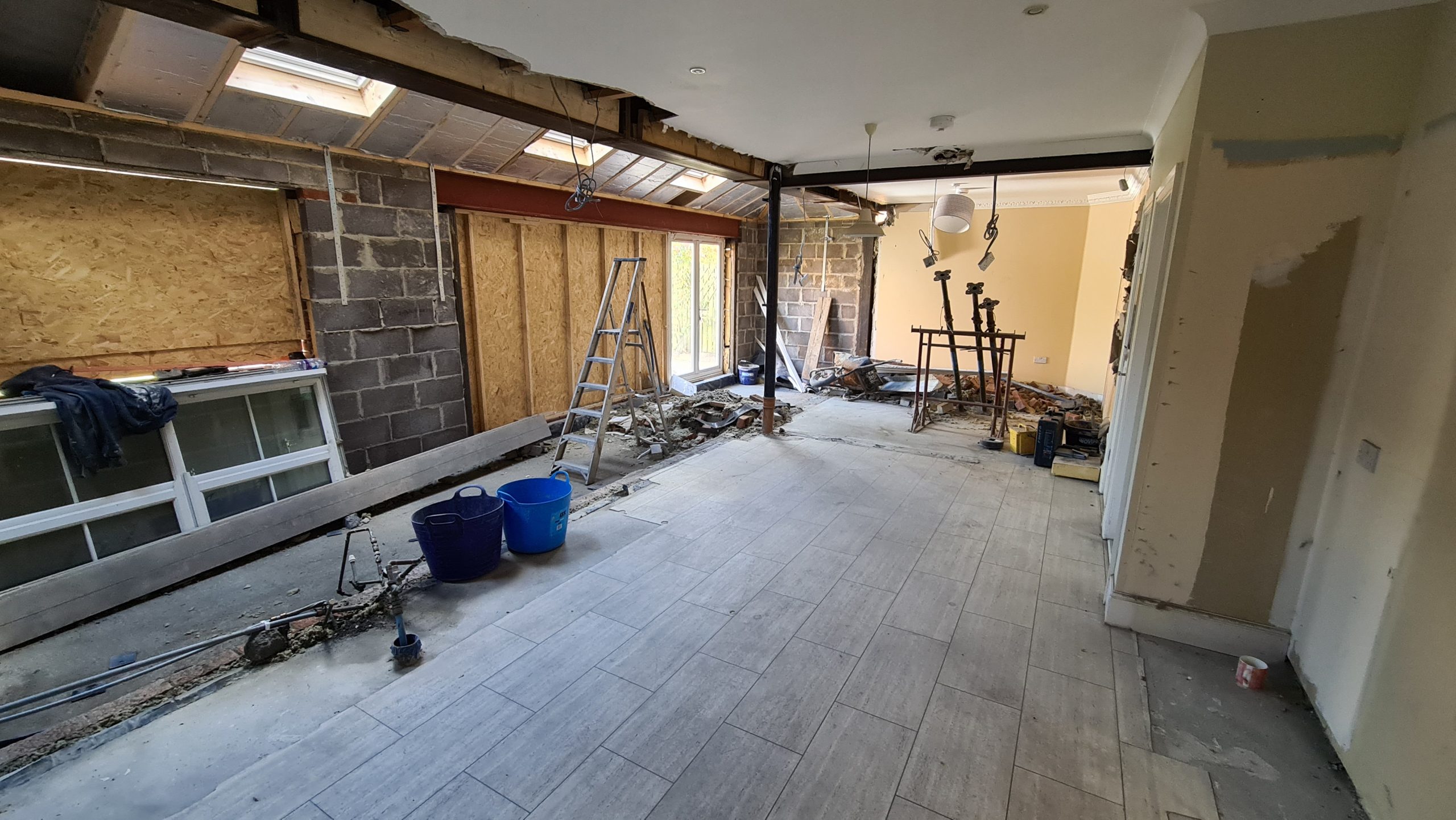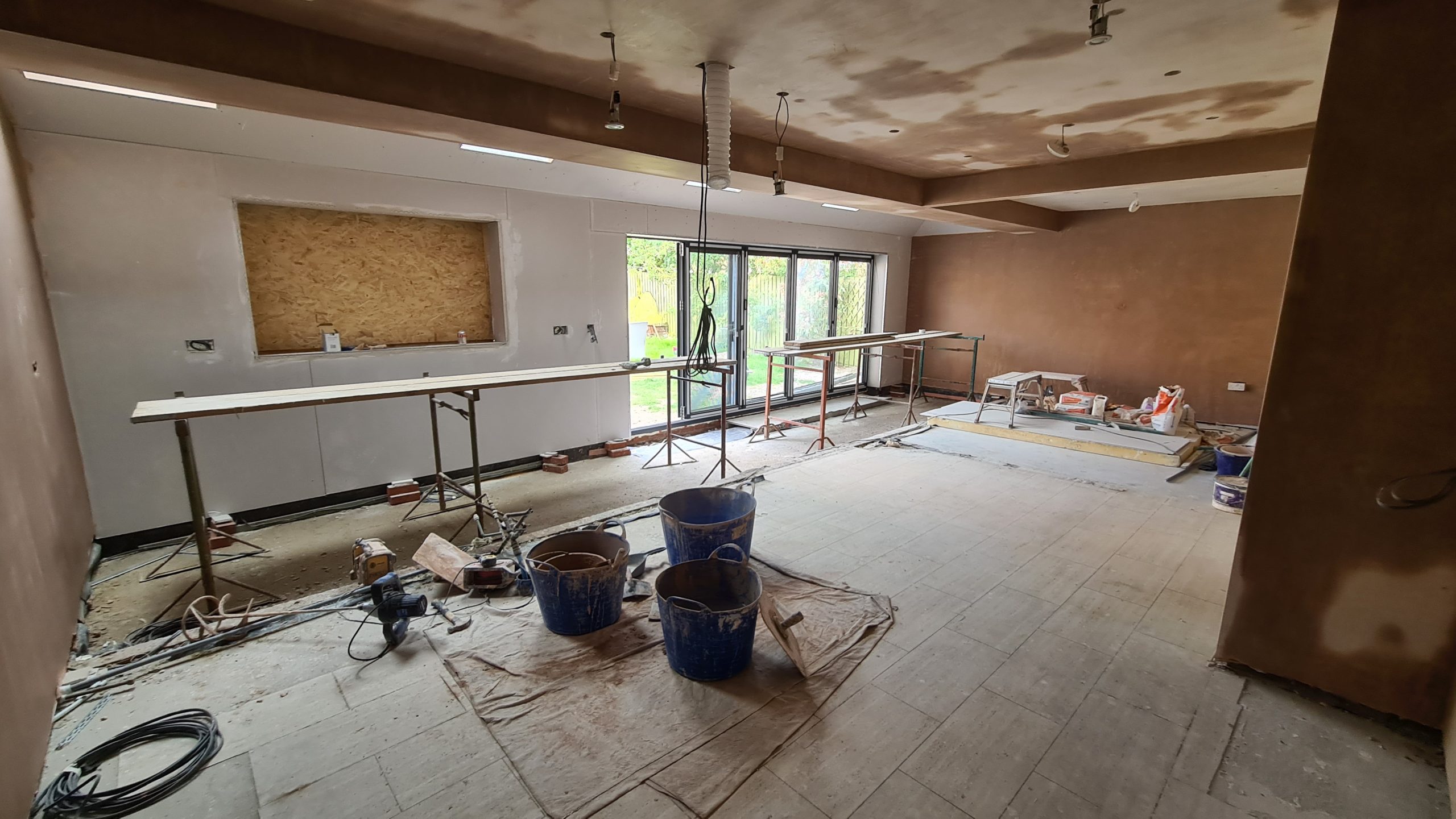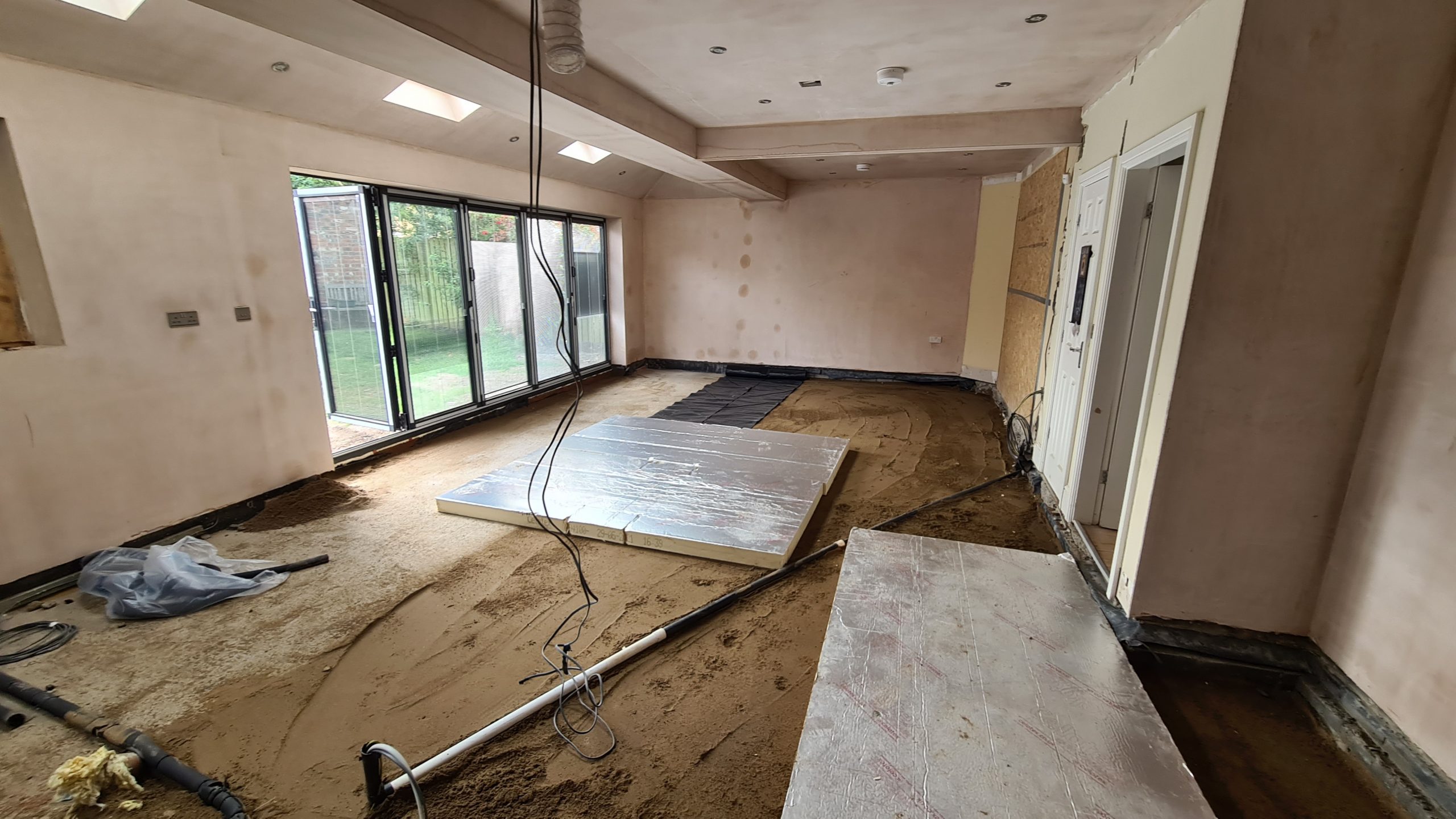 Walls are down, floor taken up and plastering done. Underfloor heating going in tomorrow. Building Work – Project 3 – Weeks 8 and 9